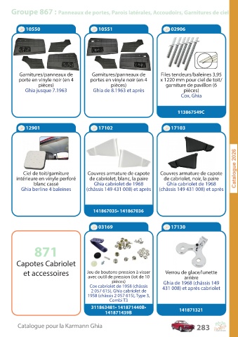 C a talogue pour la K ar mann Ghia 283
