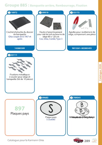C a talogue pour la K ar mann Ghia 289