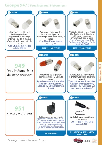 C a talogue pour la K ar mann Ghia 333
