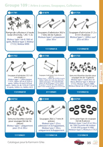 Groupe 109 : Arbre à cames, Soupapes, Culbuteurs
