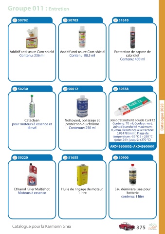 Catalogue pour la Karmann Ghia 375