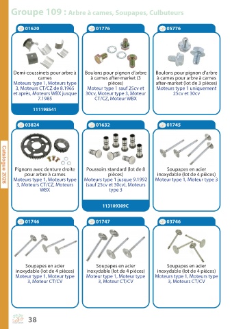 Groupe 109 : Arbre à cames, Soupapes, Culbuteurs