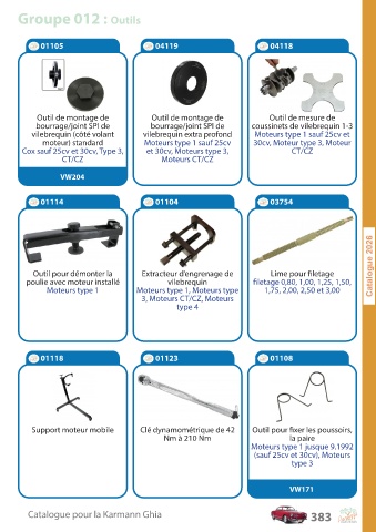 Catalogue pour la Karmann Ghia 383