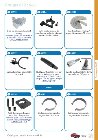 Catalogue pour la Karmann Ghia 387