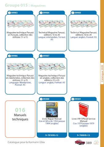 C a talogue pour la K ar mann Ghia 389