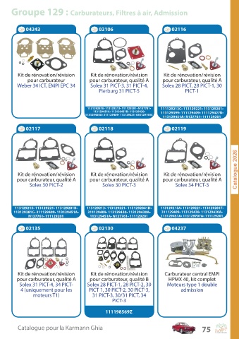 Groupe 129 : Carburateurs, Filtres à air, Admission