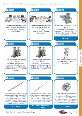 Groupe 129 : Carburateurs, Filtres à air, Admission