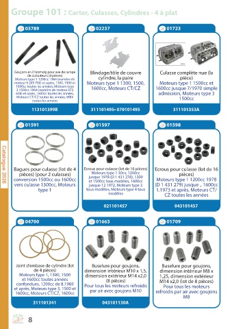 Groupe 101 : Carter, Culasses, Cylindres - 4 à plat