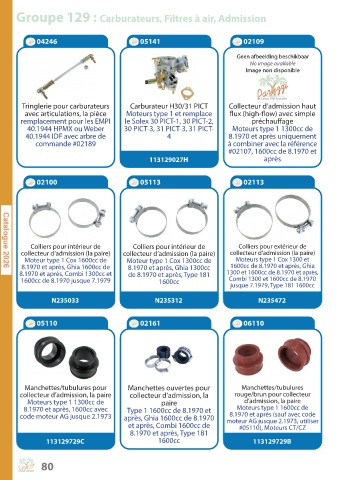 Groupe 129 : Carburateurs, Filtres à air, Admission