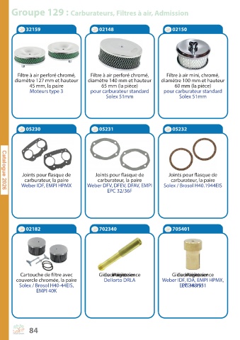 Groupe 129 : Carburateurs, Filtres à air, Admission