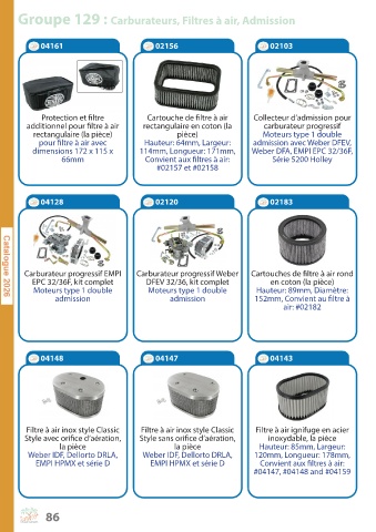 Groupe 129 : Carburateurs, Filtres à air, Admission
