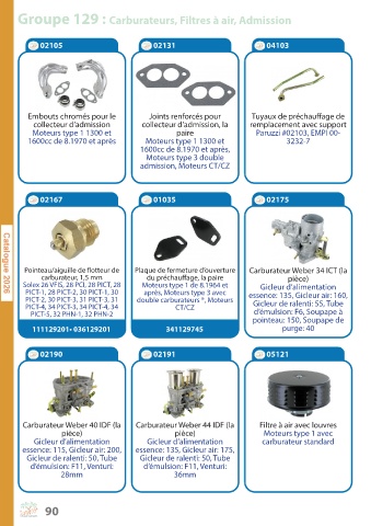 Groupe 129 : Carburateurs, Filtres à air, Admission