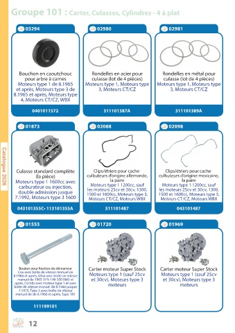 Groupe 101 : Carter, Culasses, Cylindres - 4 à plat