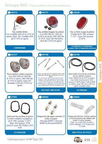 Catalogue pour la VW Type 181 215
