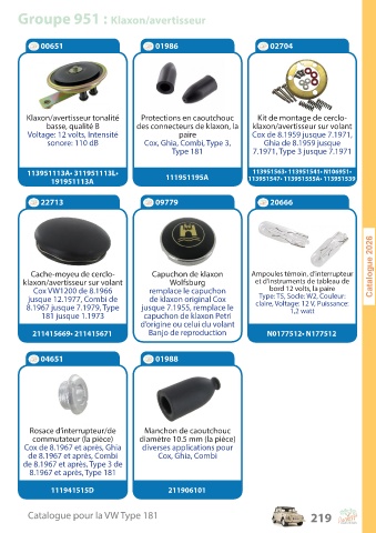 Catalogue pour la VW Type 181 219