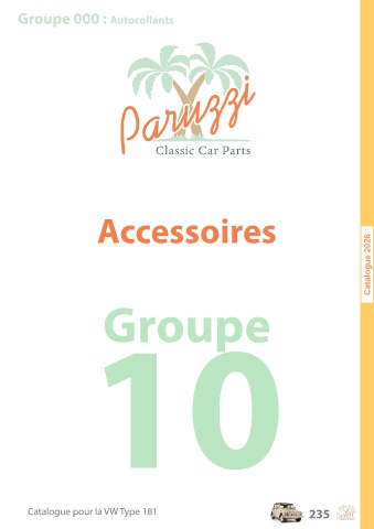 Groupe 000 : Autocollants Classic Car Parts Accessoires Groupe 10 Catalogue pour la VW Type 181 235 235 AR C R A P S A CL CLASSIC CAR PARTS T S C I S