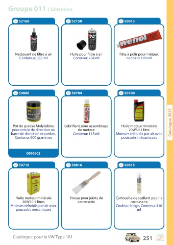 Catalogue pour la VW Type 181 251