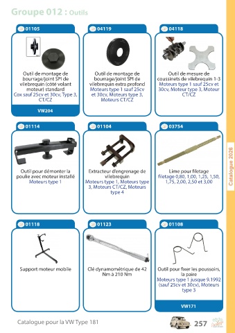 Catalogue pour la VW Type 181 257