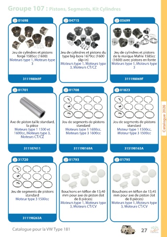 Groupe 107 : Pistons, Segments, Kit Cylindres
