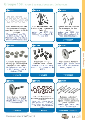 Groupe 109 : Arbre à cames, Soupapes, Culbuteurs