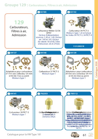Groupe 129 : Carburateurs, Filtres à air, Admission