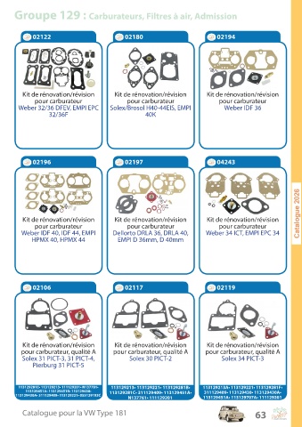 Groupe 129 : Carburateurs, Filtres à air, Admission