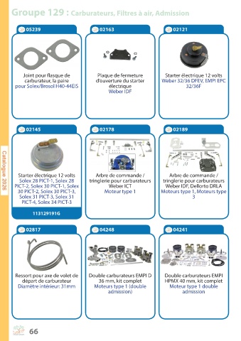 Groupe 129 : Carburateurs, Filtres à air, Admission