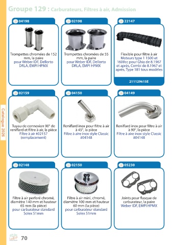 Groupe 129 : Carburateurs, Filtres à air, Admission
