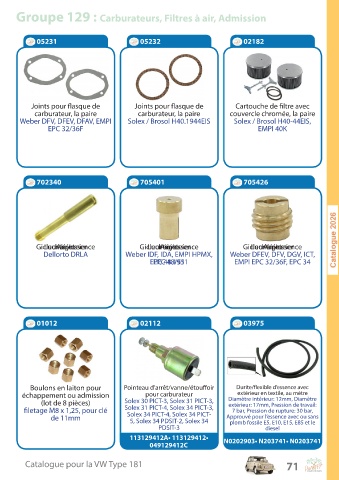 Groupe 129 : Carburateurs, Filtres à air, Admission