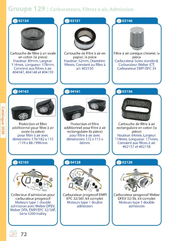 Groupe 129 : Carburateurs, Filtres à air, Admission