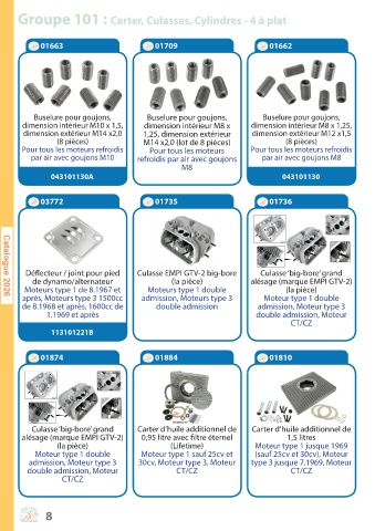 Groupe 101 : Carter, Culasses, Cylindres - 4 à plat
