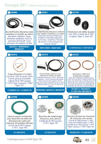 Catalogue pour la VW Type 181 85
