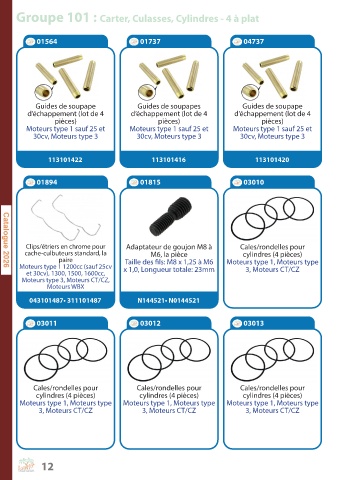 Groupe 101 : Carter, Culasses, Cylindres - 4 à plat