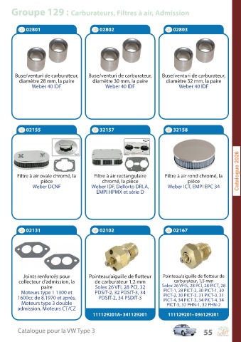 Groupe 129 : Carburateurs, Filtres à air, Admission