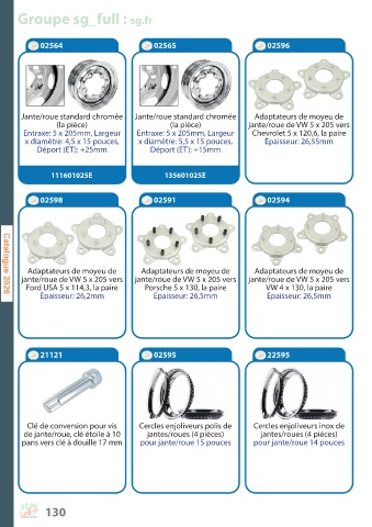 Ford USA 5 x 114,3, la paire Porsche 5 x 130, la paire VW 4 x 130, la paire