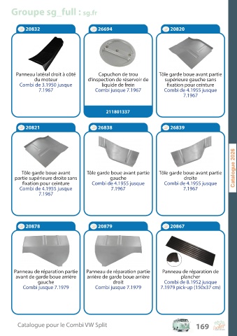 Page 169 - Catalogue de pièces détachées pour le Combi Volkswagen Split