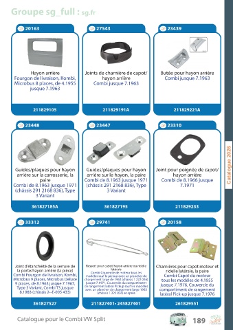 Page 189 - Catalogue de pièces détachées pour le Combi Volkswagen Split