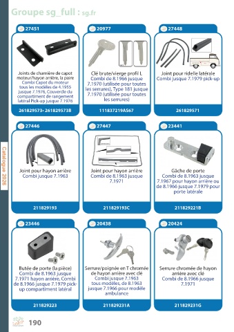 Page 190 - Catalogue de pièces détachées pour le Combi Volkswagen Split