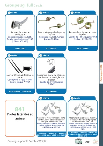 Catalogue pour le Combi VW Split 201