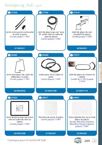 C a talogue pour le C ombi V W Split 209