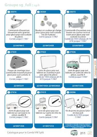C a talogue pour le C ombi V W Split 211