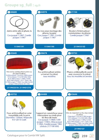 C a talogue pour le C ombi V W Split 259