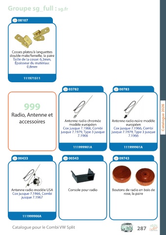 Catalogue pour le Combi VW Split 287