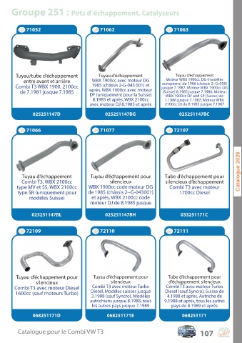 C a talogue pour le C ombi V W T3 107