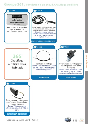 C a talogue pour le C ombi V W T3 113