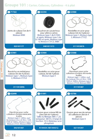 Groupe 101 : Carter, Culasses, Cylindres - 4 à plat