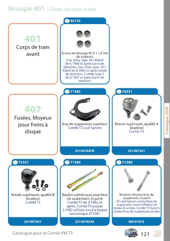 C a talogue pour le C ombi V W T3 121
