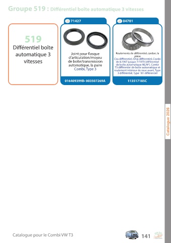 C a talogue pour le C ombi V W T3 141