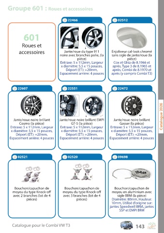 Groupe 601 : Roues et accessoires