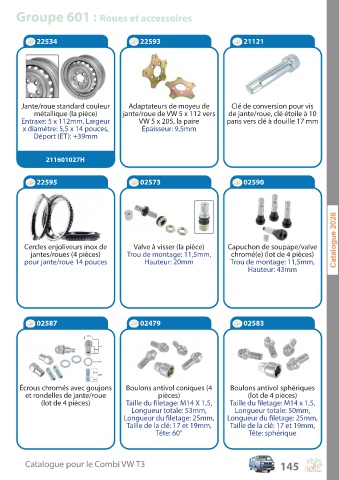 Groupe 601 : Roues et accessoires